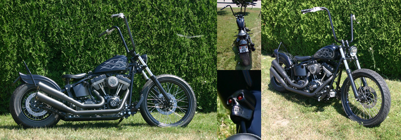 APE - TwinCam 1550 - Glasgeperlt, Seidenmatt - Pinstriping by Löffler - 23" Vorderrad, mitschwingendes Heck - Twin Tec King-Sportster Tank - Fetter Apehanger mit Twin Tec Griffen, PM Hebeln und versteckten Schaltern - Kesstech 2in2 Anlage, elektrisch einstellbar ... und unzählige Details |