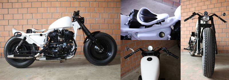 VERKAUFT 4-Gang Sportster, umgebaut auf Zahnriemen - 16*3" Scheibenräder - RST Gabelbrücke, 5° gereckt - Twin Tec Lenker, Sattel von CrimeScene Choppers, Bobtail Fender - Der Luftfilter stammt von einem Rasenmäher ... weitere Bilder: V1 V2 |